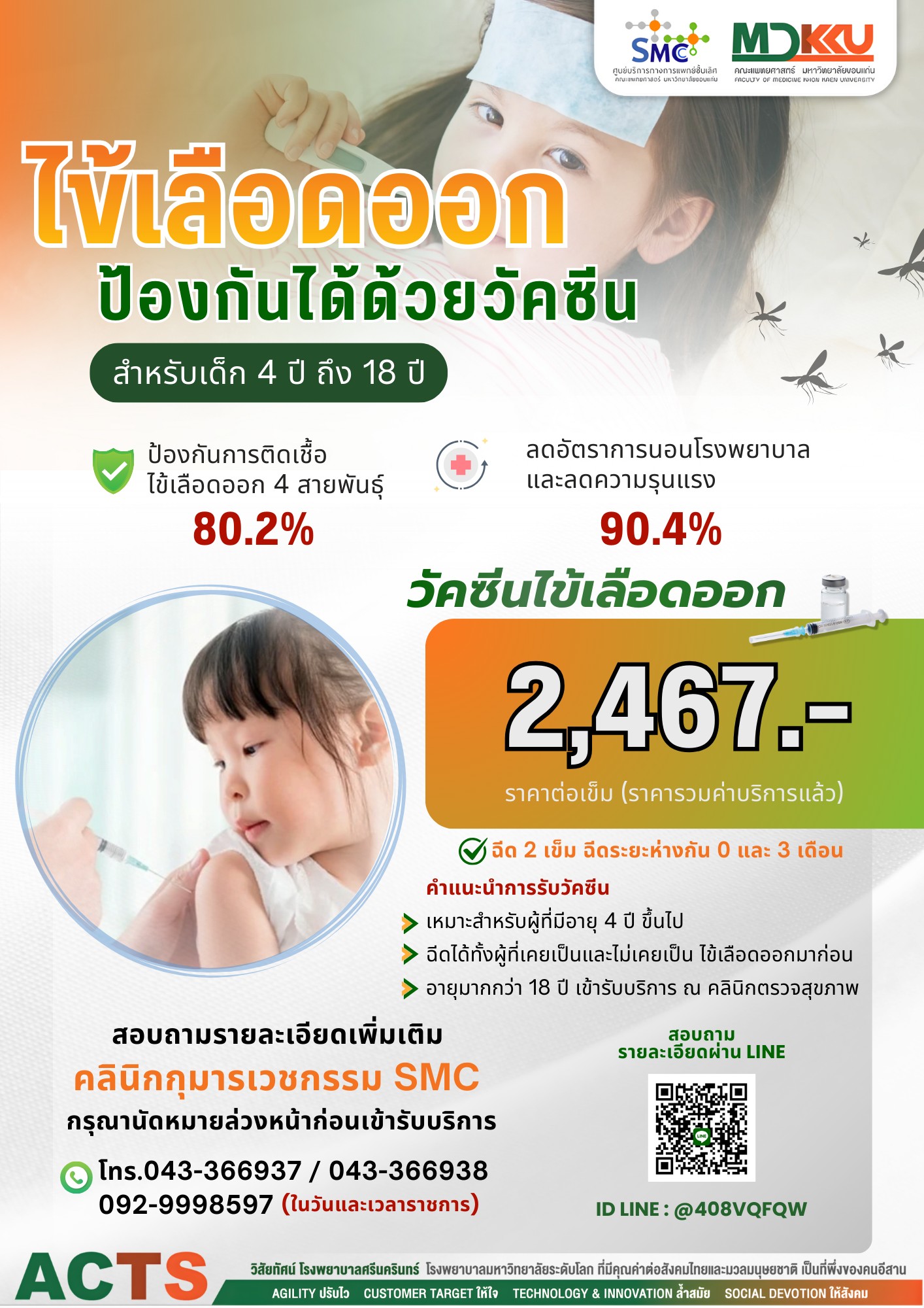 ติดต่อสอบถามเพิ่มเติมได้ที่ ณ คลินิกกุมารเวชกรรม SMC อาคาร สว.1 ชั้น 3