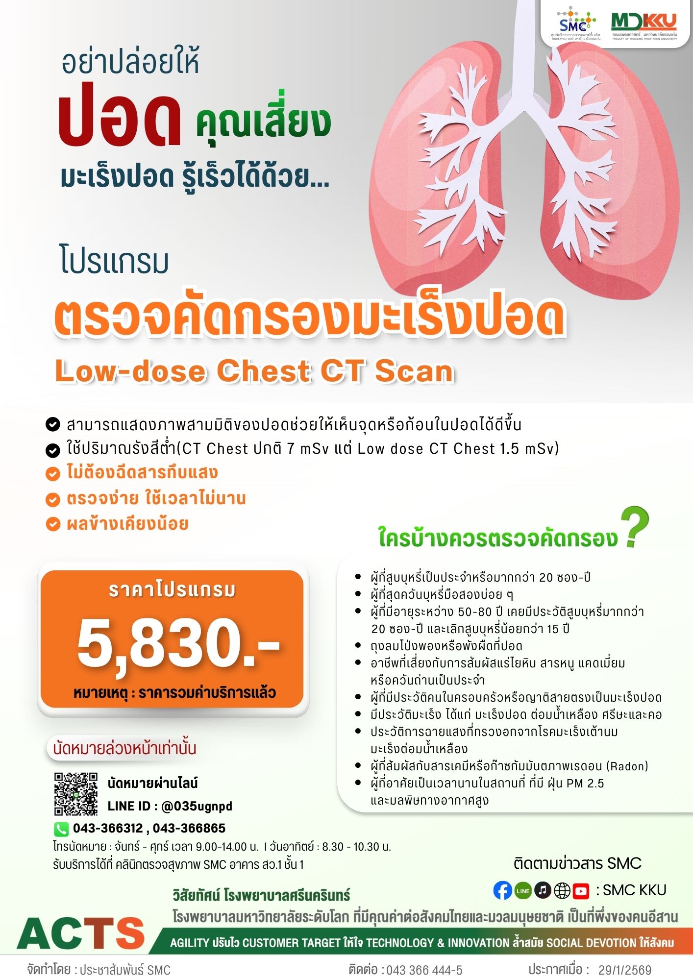 โปรแกรมตรวจคัดกรองมะเร็งปอด ( Low-dose Chest CT Scan) เทคโนโลยีที่แม่นยำ ปลอดภัยมากขึ้น