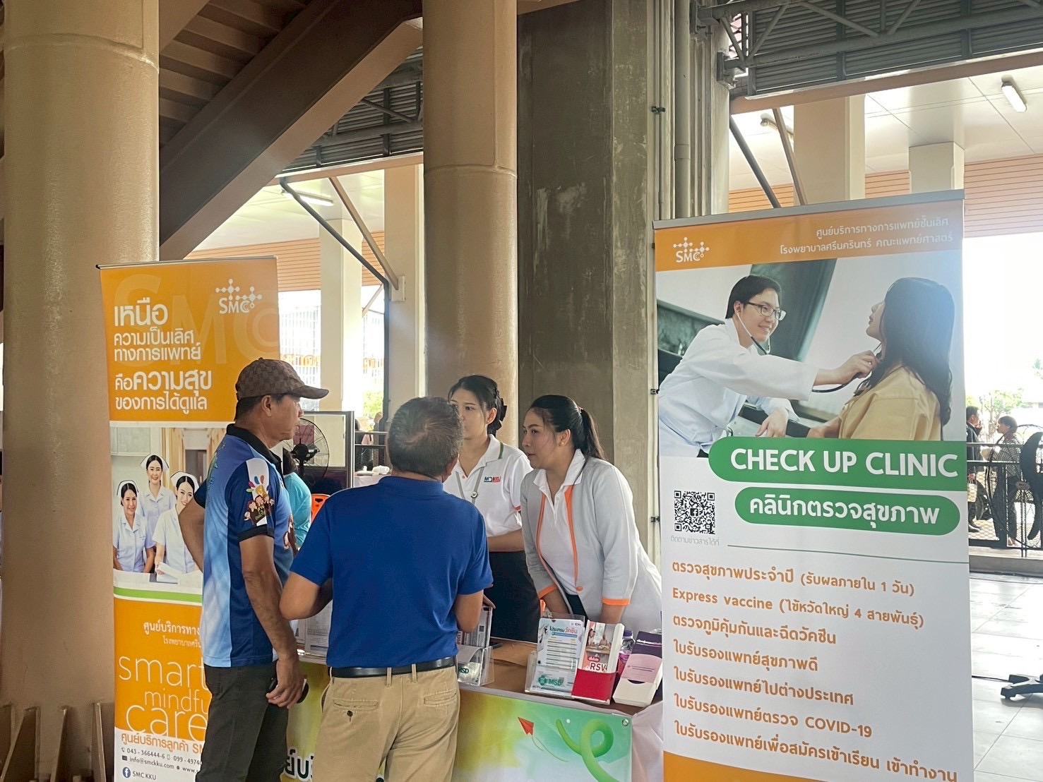 ภายในบูธ SMC มีบริการให้คำแนะนำเรื่องวัคซีน การตรวจสุขภาพพื้นฐาน รวมถึงการให้ข้อมูลการบริการคลินิกเฉพาะทางของ SMC เพื่อให้ผู้รับบริการได้พบแพทย์เฉพาะทางและมีความสะดวกรวดเร็วยิ่งขึ้น